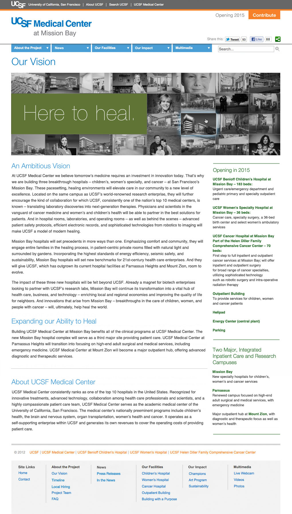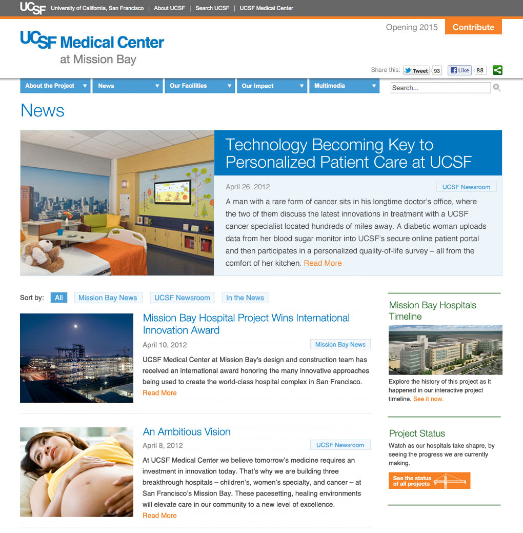 This version of the UCSF Mission Bay site was live from Summer 2012 – Early 2015.