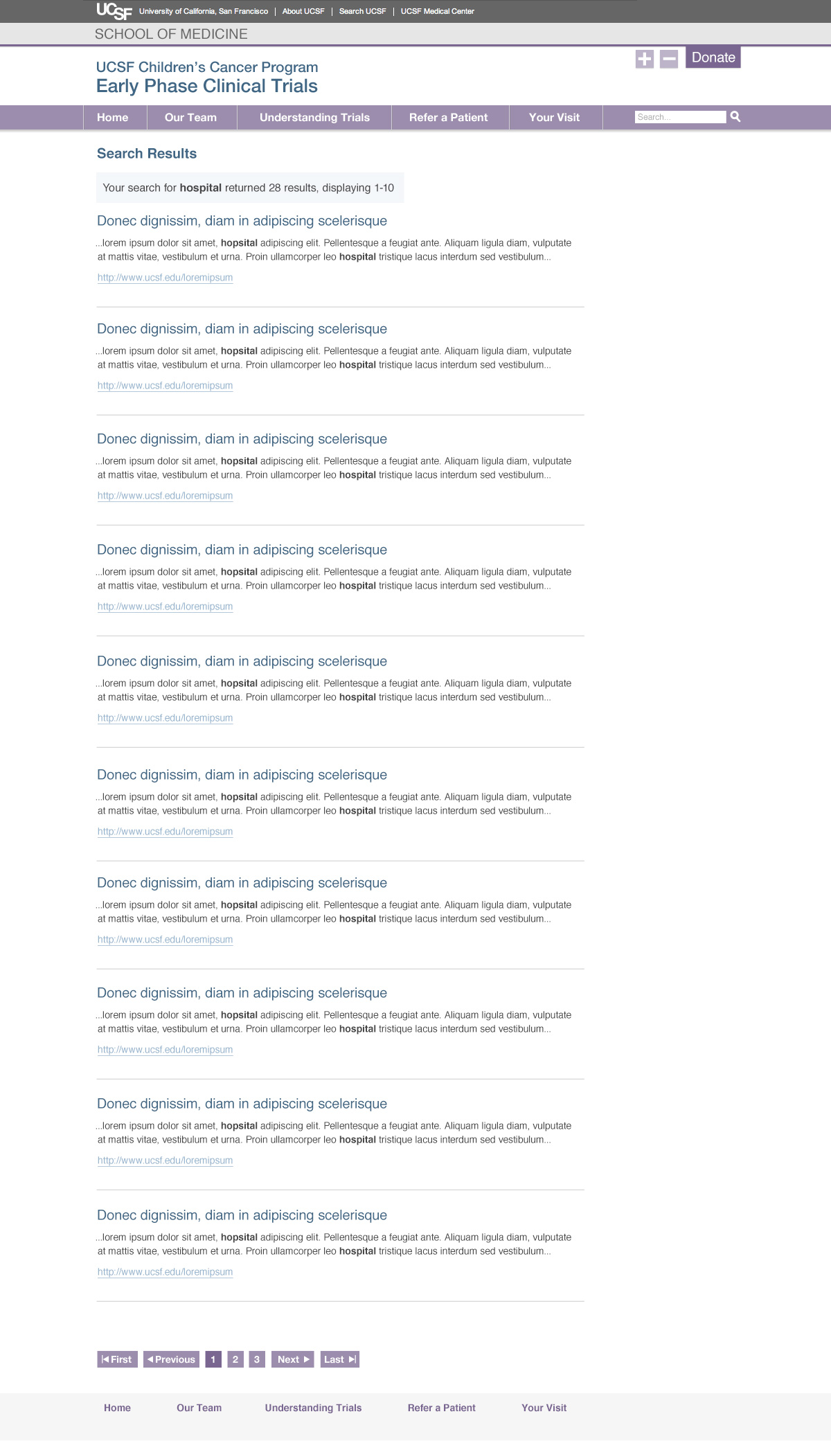 Children's Cancer Clinical Trials search sample